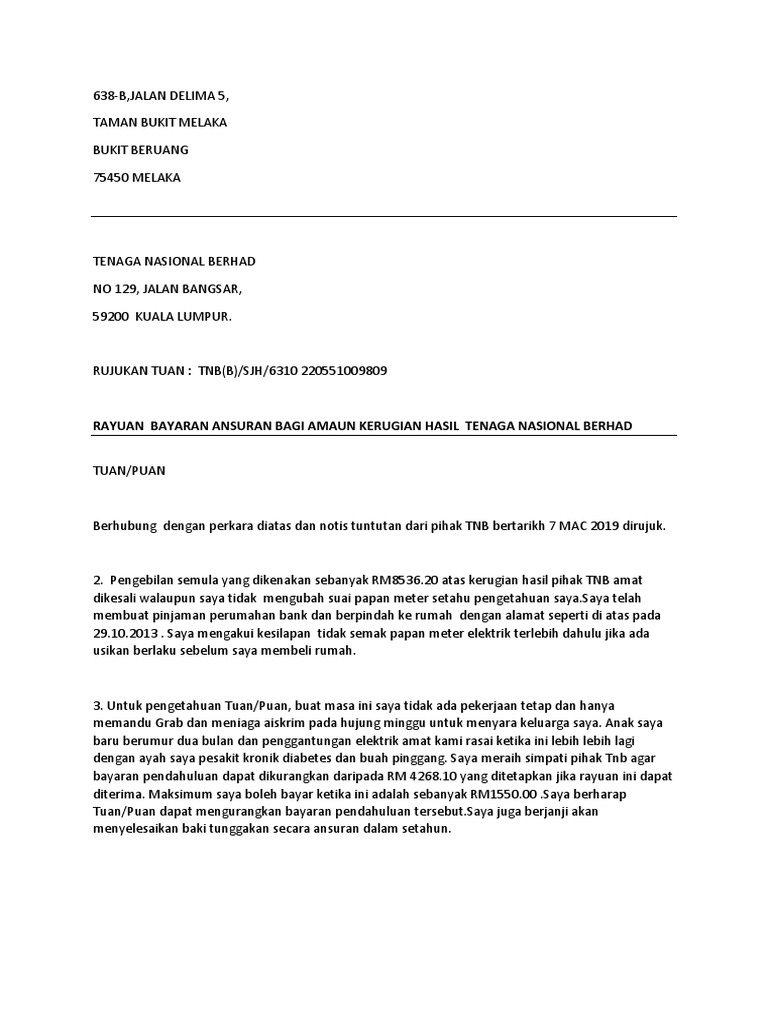 . Surat rayuan bayaran ansuran tnb online surat rayuan bayaran ansuran. Pembayaran pendahuluan up front sebanyak rm 40 000 00 untuk memulakan proses. Pelajari contoh surat perjanjian hutang piutang diatas from inicontohsurat2022.